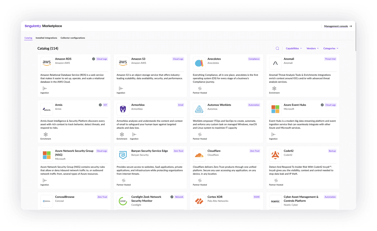 Extend the power of the intelligent Singularity™ Platform within an ecosystem of industry-leading solution providers for unified prevention, detection, and response.